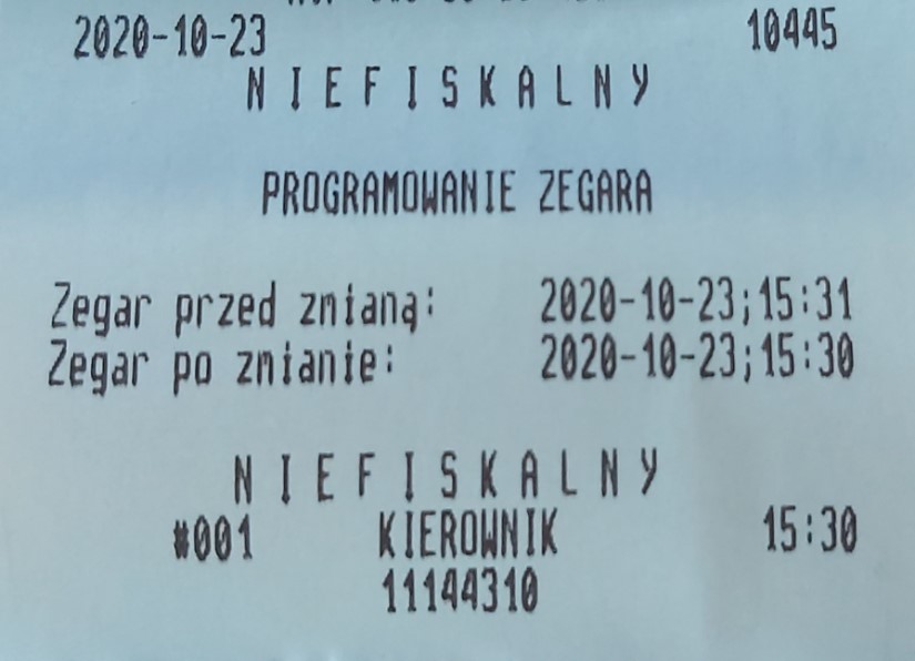 W kasie, podatnik może samodzielnie zmienić czas maksymalnie o 2 godziny. Przed rozpoczęciem sprzedaży należy upewnić się, czy data i czas zegara kasy są prawidłowe. W przypadku zmiany godziny większej o 2 godziny wymagana jest interwencja serwisu.